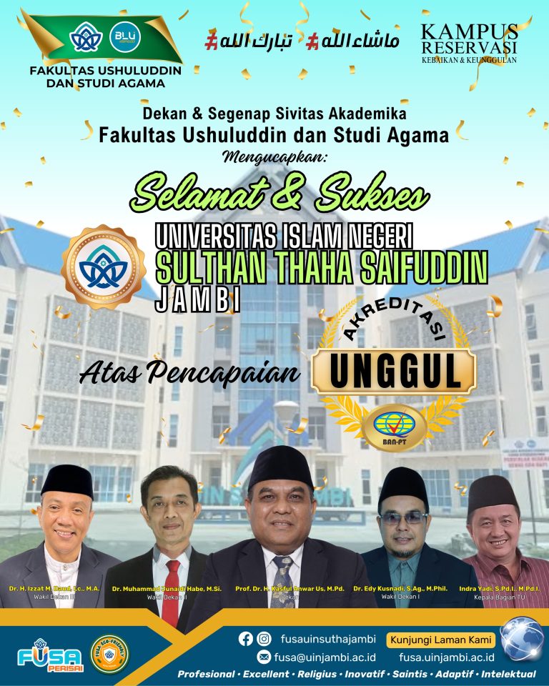 Fakultas Ushuluddin dan Studi Agama (FUSA) UIN Sulthan Thaha Saifuddin Jambi kembali melakukan persiapan re-akreditasi Prodi Ilmu Alqur’an dan Tafsir (IAT) Hal ini disampaikan oleh Dekan FUSA