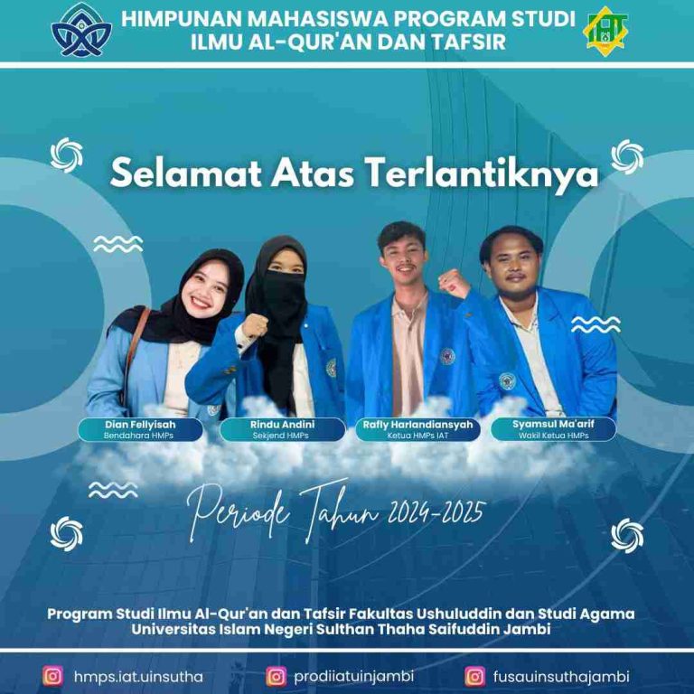 Bertempat di Ampiteather GCR UIN Sulthan Thaha Saifuddin Jambi Pengurus Badan Harian Himpunan Mahasiswa Program Studi Ilmu Alur’an dan studi Agama (IAT) Fakultas Ushuluddin dan Studi Agama UIN Sulthan Thaha Saifuddin resmi dilantik oleh Wakil Dekan III Dr. H. Izzat M.Daud, Lc.MA, Jum’at (18/10/2023) Pelantikan pengurus baru HMP IAT periode