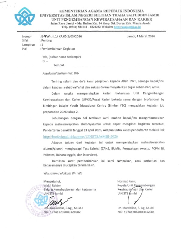 Beranda / Pengumuman / Pemberitahuan Kegiatan Job Preparation 2026 Tahap ke-2