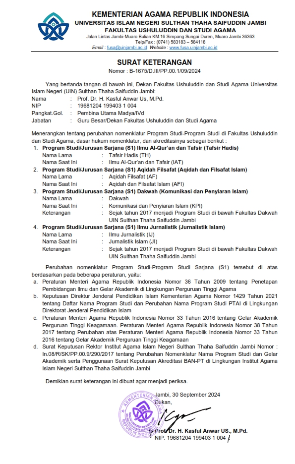 Fakultas ushuluddin dan studi agama uin sulthan thaha saifuddin jambi